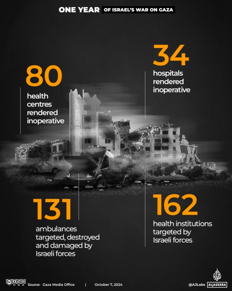 以色列声称巴勒斯坦武装组织哈马斯将医院用于军事目的。以色列部队一再袭击加沙的医疗设施,卫生部门已经不堪重负,基础设施遭到破坏。