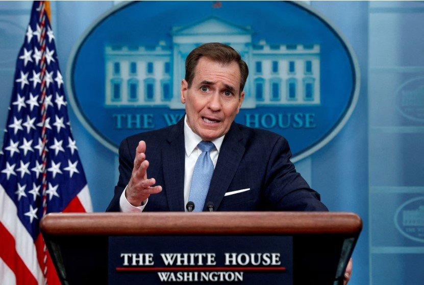 柯比指的是美国总统拜登,拜登周一上午与英国、法国、德国和意大利领导人就中东局势进行了电话交谈。