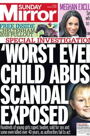 《星期日镜报》2018年的头版曝光了儿童性侵团伙(图片:星期日镜报》)