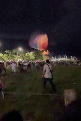 周日晚上,34岁的朱利安·安德里姆斯Martínez在一个节日上试图让这个大型装置停下来时,被甩出了这个装置。在这段令人震惊的视频中,观众可以看到大气球向他们冲来,他们在路上狂奔。镜头开始时,一阵阵强风开始把气球吹走,气球里有很多人。地面上的几个人,包括Martínez先生,试图抓住气球,以拯救里面的人。
