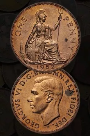 总部位于伦敦的交易商Sovereign rare在其网站上表示:“乔治六世1952年的正版便士仍然是独一无二的,这也许是可以理解的,因为国王早在1952年2月6日就去世了。”1952年,只有需求量很大的小面额硬币被投入流通,大面额的硬币被省略了,因为人们预计女王伊丽莎白二世将迎来新的统治和新硬币。”