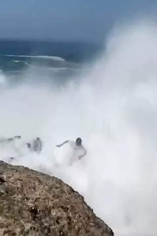 与此同时,他的朋友们在安全距离外拍照。在新的视频片段中,罗尼高高举起双臂,然后被汹涌的海浪淹没,拖出了大海。至少还有一个人被撞下岩石掉进了水里,围观的人都在笑,然后才意识到罗妮失踪了。