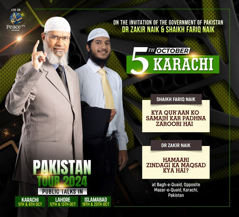 奈克博士将于10月5日在卡拉奇发表演讲,主题是“我们生命的目的”,而法里克·奈克博士将于次日发表演讲,主题是“读古兰经时有必要理解古兰经吗?”
