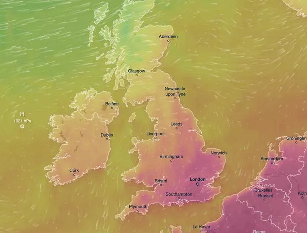 最近的温暖天气将持续到本周初,明天气温可能达到32摄氏度,然后水银开始下降。高速气流的位置对天气状况起了很大作用,因为它向英国北部移动,使得暖空气从欧洲大陆进入,高压在英国上空占主导地位。文图斯基的一张天气图显示,红色的斑块横跨东南部、西南部、东安格利亚、中部地区和东北部。