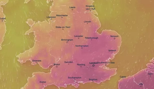 英国将迎来一年中最热的一天,气象地图显示,五个地区将变成红色。