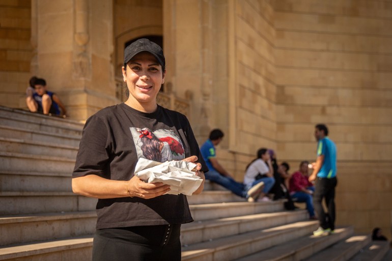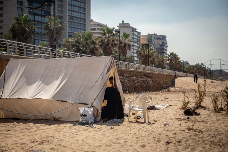 玛丽亚姆迅速收拾了几袋衣服,逃到贝鲁特市中心,她现在和数百名从她的社区流离失所的人一起睡在一座清真寺的台阶上。
