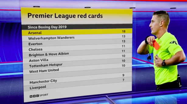 《每日比赛》强调了这一问题,将阿森纳的战绩与英超对手进行了比较(图片:英国广播公司)