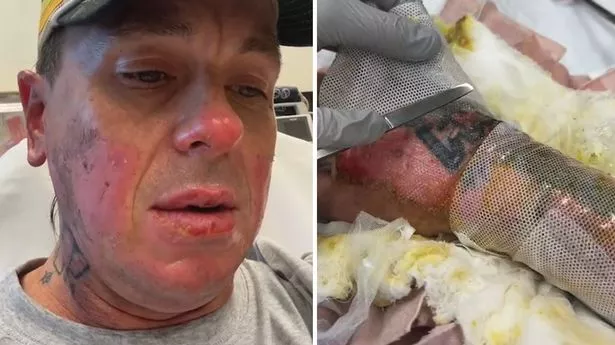 这支47岁的重金属乐队的唱机师说:“我的整个右臂都缠着绷带,左臂的一半也缠着绷带。我的脸基本上从鼻子以下都融化了。但是肿胀消失了,他们说这张脸很神奇,它是再生的,它发生得很快,似乎愈合得很快。我想我也有过好日子,但我还活着,所以我过得很好。”