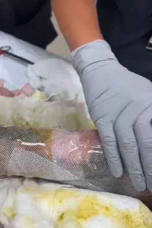 由于找不到足够长的树枝在安全距离外点燃这些碎片,他后悔地决定采取进一步行动。他接着说:“我缺乏耐心,我当时想,管他呢。我会没事的,你知道吗?我蹲下来,伸手点了火,外面非常潮湿,所以还有很多蒸汽在里面徘徊,然后就……哇。爆炸。”