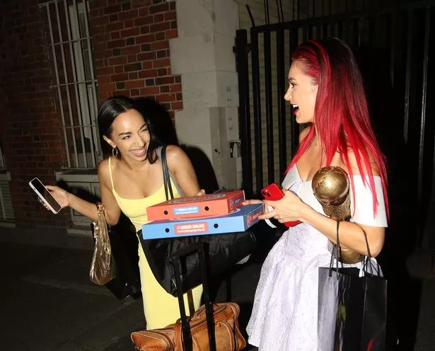 在领取披萨后,这些专业舞者似乎非常高兴,他们在这家廉价餐厅外摆出了一系列姿势,然后走向一辆等候的专车,接他们回家。35岁的黛安穿着淡紫色露肩裙,看起来很性感。
