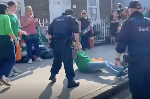 一名爱尔兰球迷在被推倒在地后被警察靠近(图片:镜子)