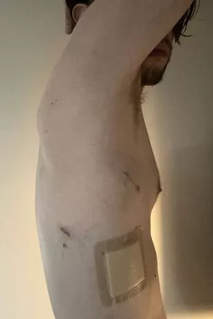 这位IT顾问说,由于剧烈的疼痛,他被迫在急诊室的地板上爬行,在进行胸部x光检查后,证实他的右肺已经衰竭。医生随后在他的胸部插入了一个泵,以重新充气他的肺,但由于严重的塌陷,这是不成功的,所以他被紧急送往威森肖医院做手术。