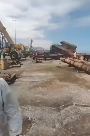 事故发生时,正在拆除一家建筑公司为扩建海水淡化厂而安装的设备。安托法加斯塔港口公司报告说,没有人因事故受伤,也没有造成任何环境破坏。