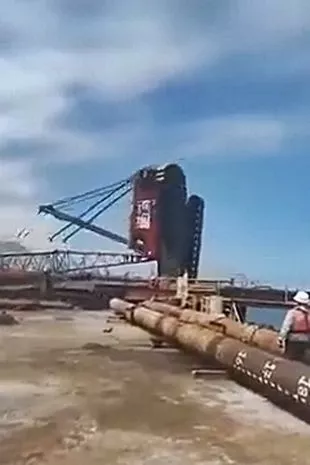 一名起重机操作员在关键时刻从倒塌的机器上跑出来,被压死,幸免于难。