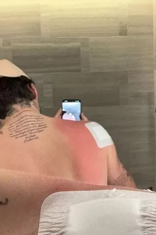 这位模特发布了一张对着浴室镜子的自拍照,照片上她的肩膀很红,身上贴着绷带。布鲁克林并没有对这张照片做任何评论,但在另一次更新中,他拍下了爸爸大卫·贝克汉姆从一根杆子上滑下来的照片,并写道:“@大卫·贝克汉姆来救援”,旁边还配了一个红色的爱心表情符号。