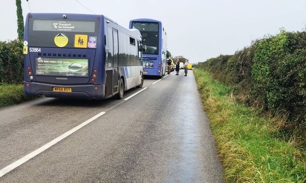 一辆校车卷入了撞车事故(图片来源:Cornwall Live/BPM MEDIA)