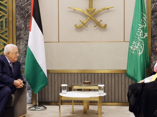 巴勒斯坦权力机构主席阿巴斯和沙特王储萨勒曼星期二会晤,讨论加沙局势。