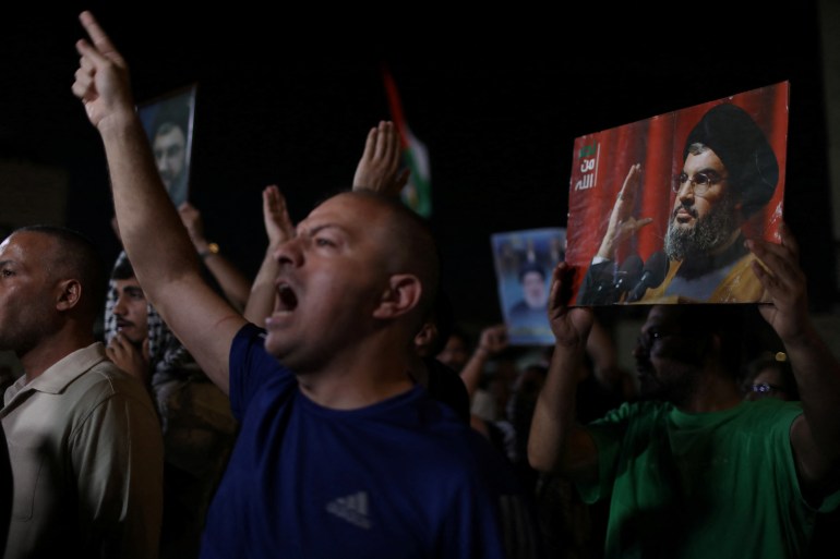 尽管如此,还是有一些人支持该组织。星期六,抗议者聚集在以色列驻安曼大使馆附近的al-Kalouti清真寺外,举着印有纳斯鲁拉照片的标语牌,高呼支持真主党的口号。