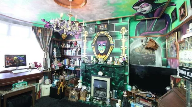 从外面看,这所位于北威尔士里尔的房子似乎是海滨小镇住宅街道上的一所普通的半独立式住宅。然而,在里面,每个房间都装饰着迪斯尼壁画,其中包括阿拉丁和茉莉公主,以及《白雪公主》中的厄休拉和邪恶女王。墙上的魔镜是否真的能告诉人们谁是世界上最美丽的人,我们不得而知。