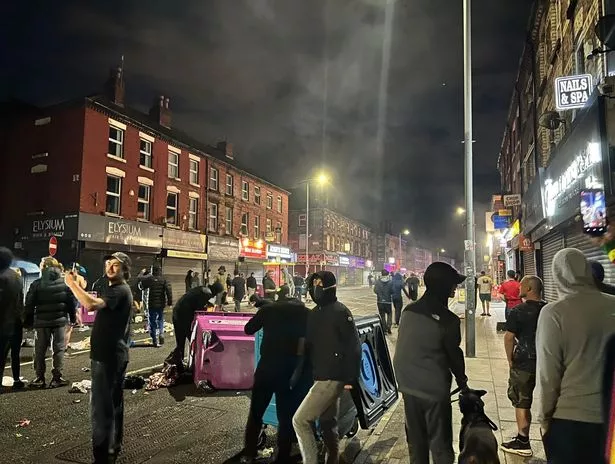 周六晚上利物浦发生暴乱(图片:@paulphilbin / X)