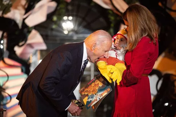但在那之前,拜登总统仍然是负责人。在他总统任期的最后几天,这位81岁的老人由于他的滑稽动作,不知不觉地把人们的注意力从哈里斯和特朗普身上拉了出来。周三,在白宫的万圣节活动上,拜登的滑稽动作引起了不小的轰动,因为他似乎在开玩笑地咬了一个婴儿的腿